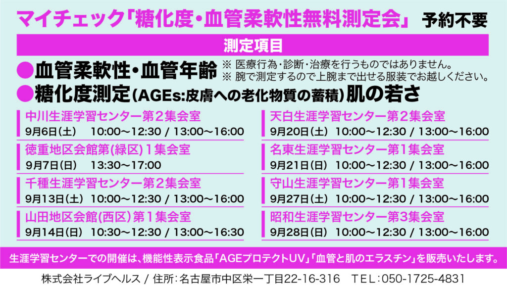 マイチェック無料測定会 名古屋市8会場 2025年9月予定