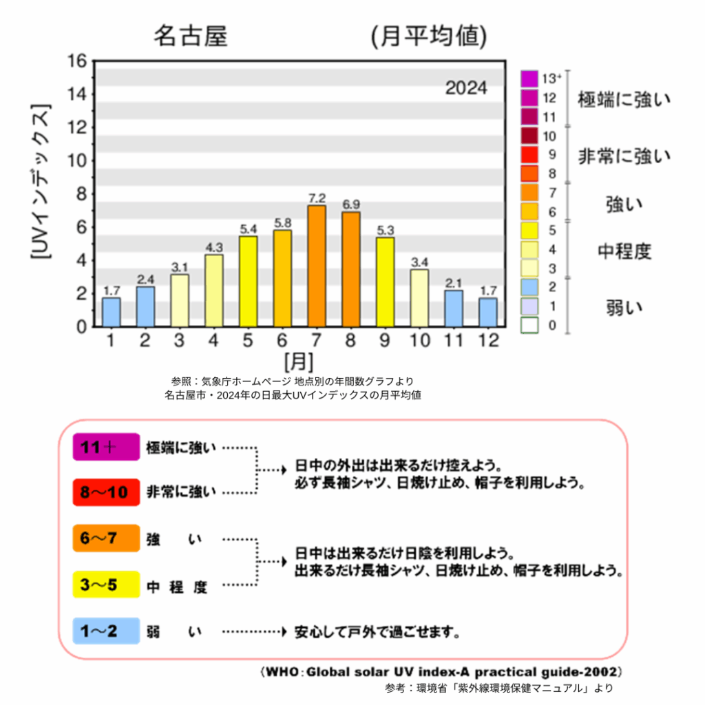 月別の紫外線量UVインデックス3以上で日焼け止めが推奨
