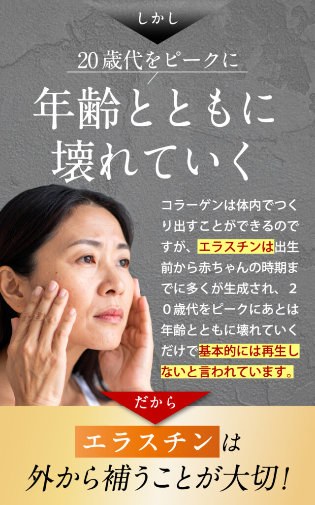 原料 :カツオの動脈球から抽出したエラスチンを使用しています。