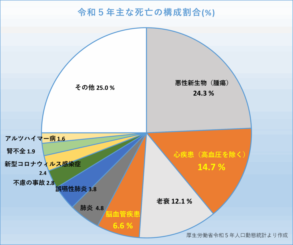 日本人の死亡原因の21.3%は心血管系の疾患です